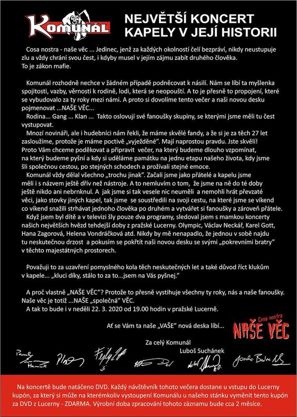 Komunál chystá v pražské Lucerně největší koncert ve své historii